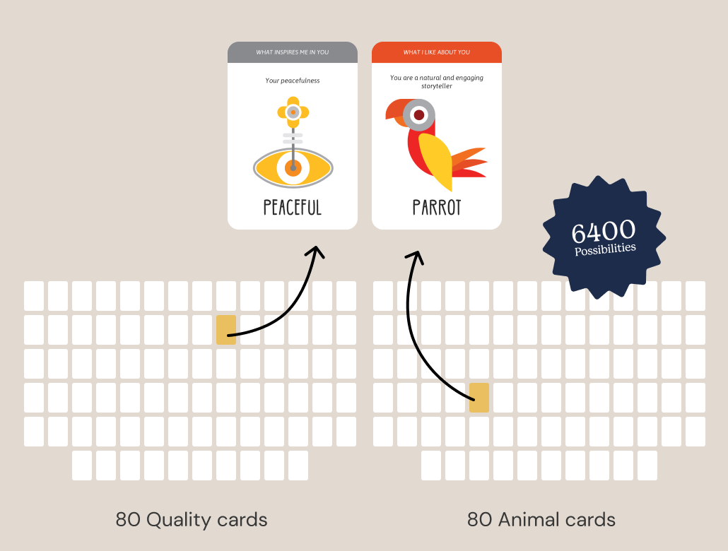 Our Totem cards are designed to strengthen caring relationships with positive statements that encourage players to speak from their heart. With Totem Participation Credits, access 160 Animal and Quality cards and inspire your colleagues to express what they appreciate about each other.